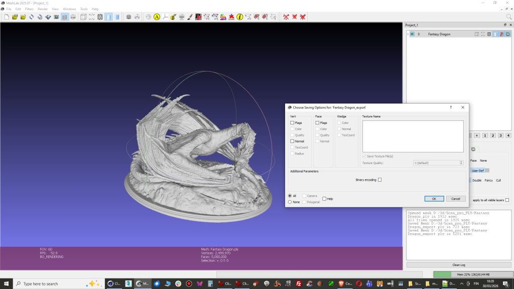 This model below had 168488 polygons that is too heavy for game engine but I guess ok for 3d-printer.