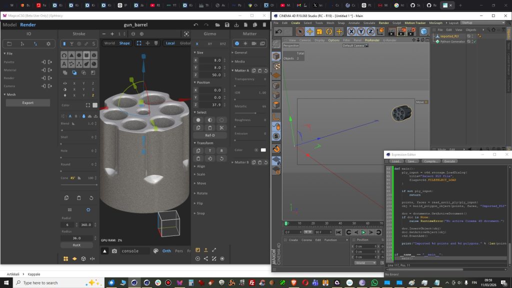Actually my first released script. I had modeled object in Magica CSG and this came handy when import into Cinema 4D R19. There is no support for PLY in R19. This version is 0.1.